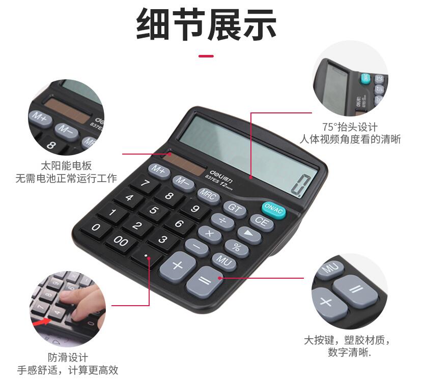 得力837計算器辦公用會計專用太陽能學(xué)生用帶語音大學(xué)財務(wù)小號便攜雙電源計算機器按鍵文具辦公用品大號