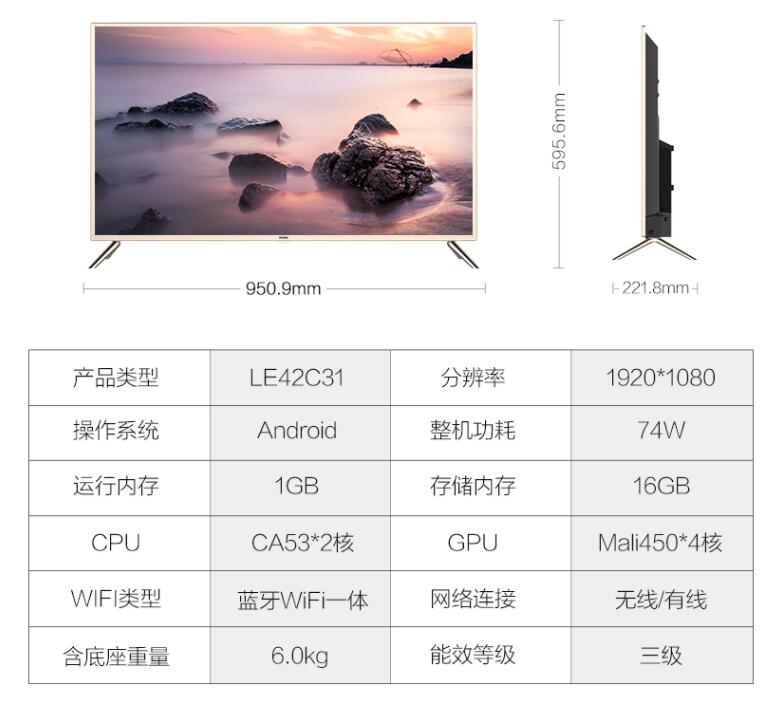 Haier/海爾 LE42C31 42英寸高清智能語音1+16G網(wǎng)絡(luò)平板電視機